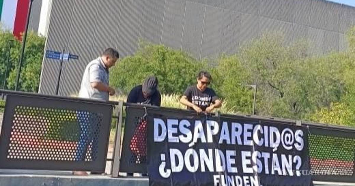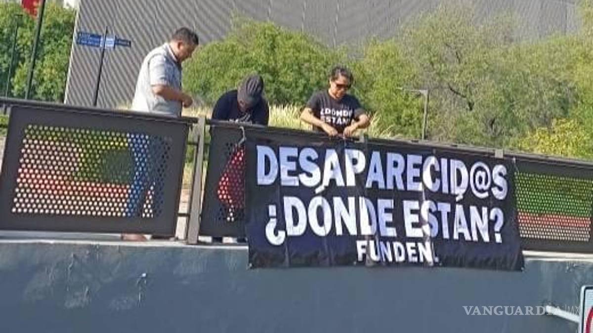 Buscadoras y buscadores colocaron lonas en protesta a las desapariciones forzadas que hay en Nuevo León y México
