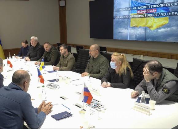 KIEV, UCR.- Los primeros ministros de Polonia, República Checa y Eslovenia viajaron a la asediada capital ucraniana de Kiev y se reunieron ayer con el presidente Volodimir Zelenski en una muestra de apoyo a Ucrania incluso en momentos en que los ataques rusos se acercaban al centro de la ciudad.