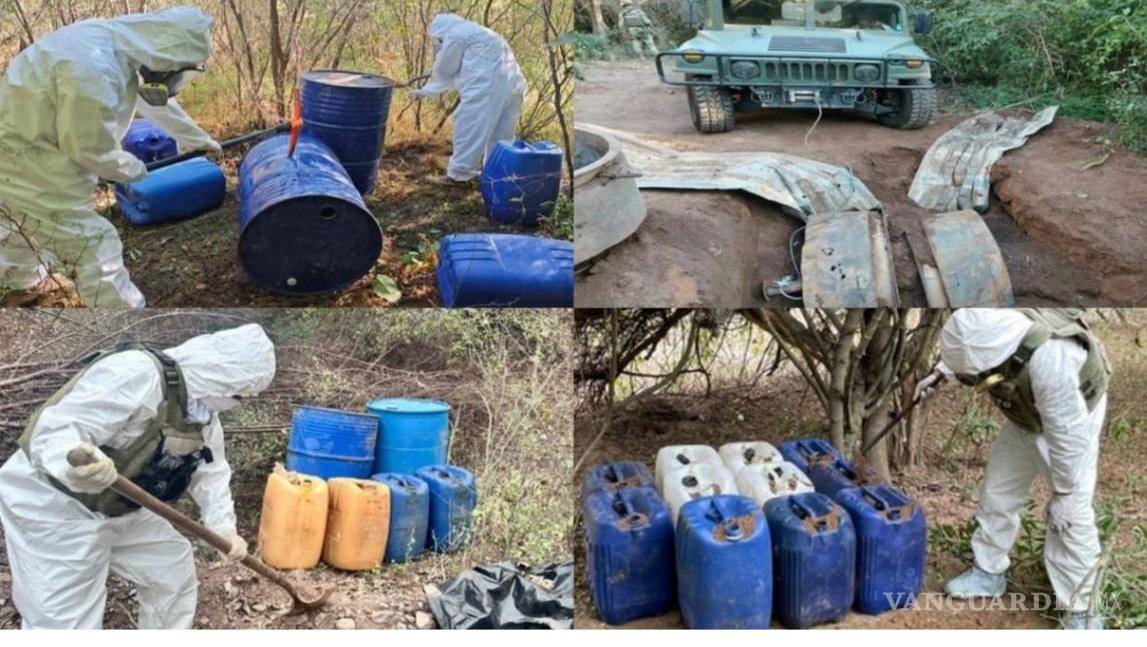 Descubren 24 ‘narcolaboratorios’ en Sinaloa: decomisan miles de litros de químicos y armas