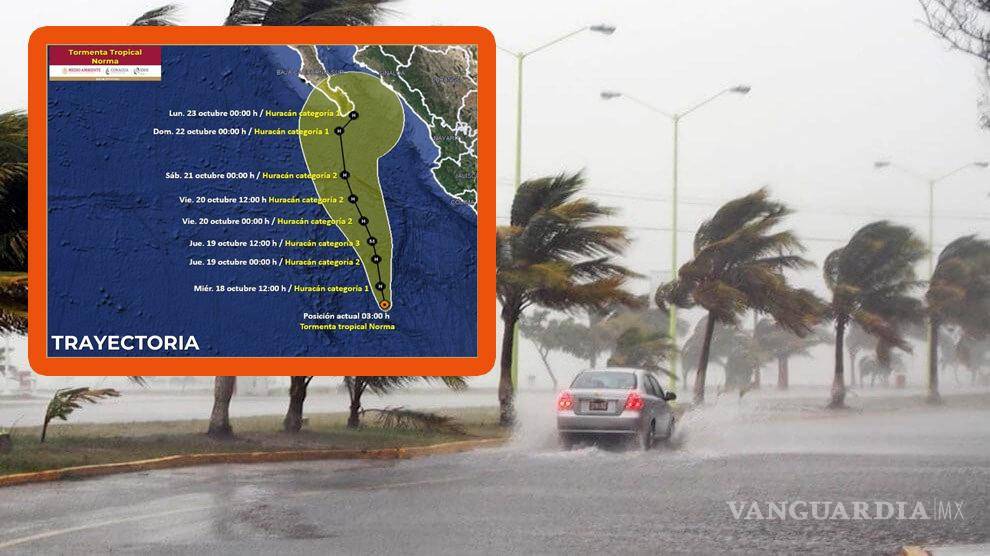 El sábado, el ciclón tropical ‘Norma’ continuará aproximándose a Baja California Sur, ya como categoría 1, su circulación generará probabilidad de lluvias puntuales torrenciales en dicho estado, lluvias intensas en Sinaloa, así como lluvias fuertes en Sonora, Durango, Nayarit y Jalisco, además de rachas fuertes de viento y oleaje elevado en las costas de Baja California Sur, Sinaloa, Nayarit y Jalisco.