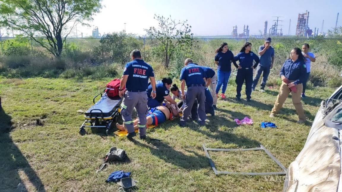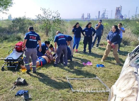 Monterrey, Nuevo León.-Un saldo de cinco personas lesionadas, entre ellas, dos menores de edad y una mujer embarazada fue el resultado de una volcadura sobre la carretera a Reynosa, en Nuevo León.