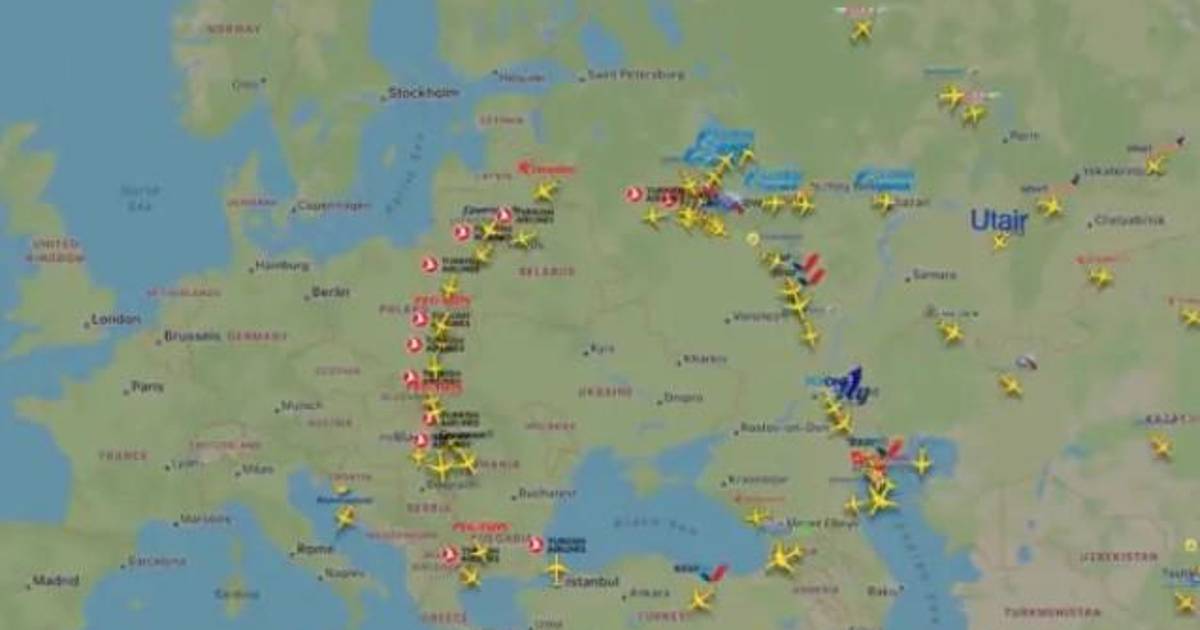 Flightradar24 , una empresa sueca que proporciona información de seguimiento de vuelos de aeronaves en tiempo real, compartió un video el jueves que muestra una gran cantidad de vuelos que salen de los aeropuertos de Moscú y San Petersburgo.