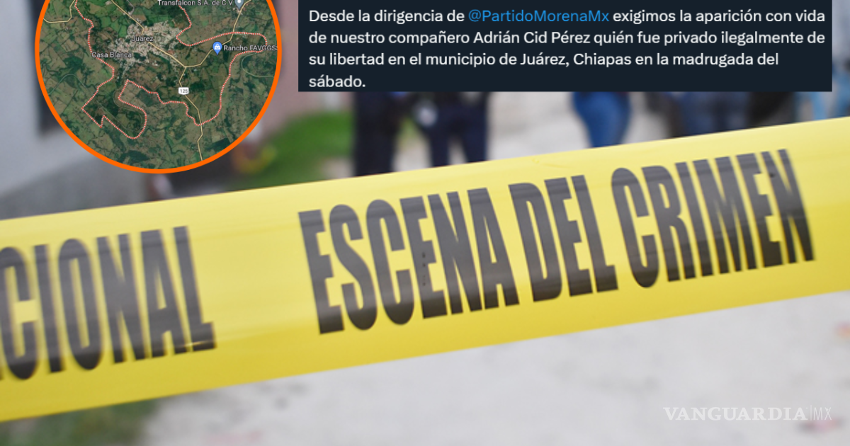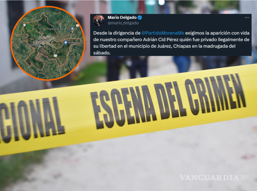Desde su cuenta, Delgado Carrillo exigió ‘la aparición con vida de nuestro compañero Adrián Cid Pérez’, quien fue privado ilegalmente de su libertad en el municipio de Juárez, Chiapas.