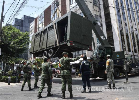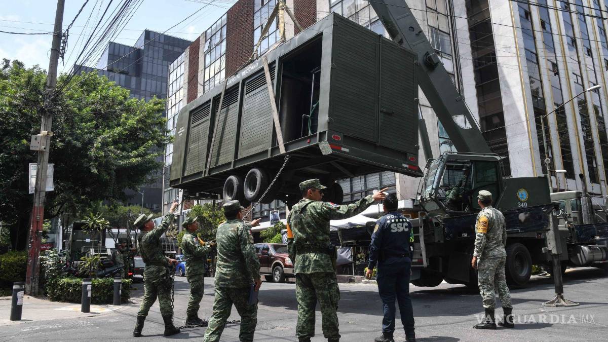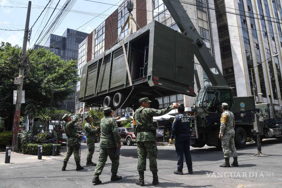Elementos del Ejército Mexicano acudieron al Parque San Lorenzo con una planta purificadora móvil, con el fin de abastecer de agua potable a vecinos de las colonias afectadas de la alcaldía Benito Juárez.