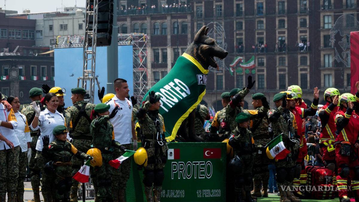 Después de recordar a Frida durante el Desfile Militar, el Ejército también realizó un homenaje a Proteo, una estatua de aproximadamente dos metros de alto mostró al can con la bandera de México y Turquía.