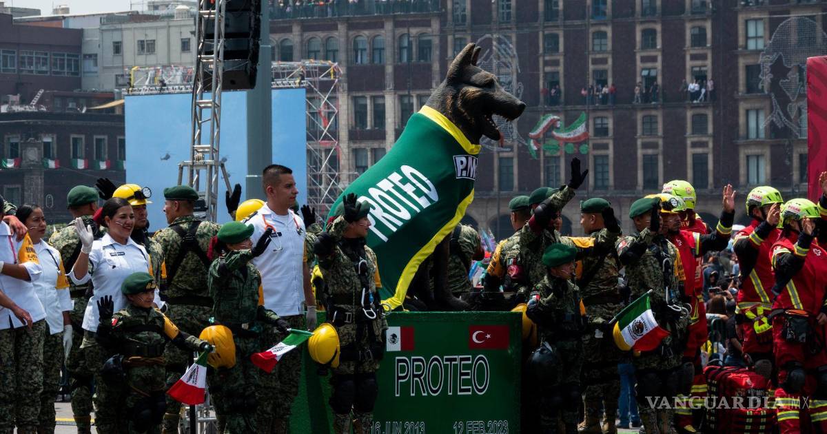 Ejército mexicano rinde homenaje a Proteo, perro rescatista fallecido en Turquía