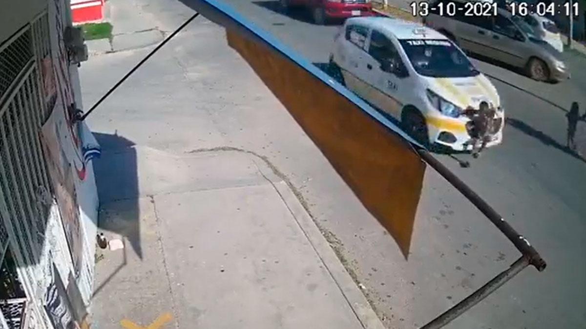 Las cámaras de seguridad de un establecimiento captaron el momento en que un menor de solo 3 años de edad fue atropellado por un taxi que circulaba a exceso de velocidad en Chetumal, Quintana Roo.
