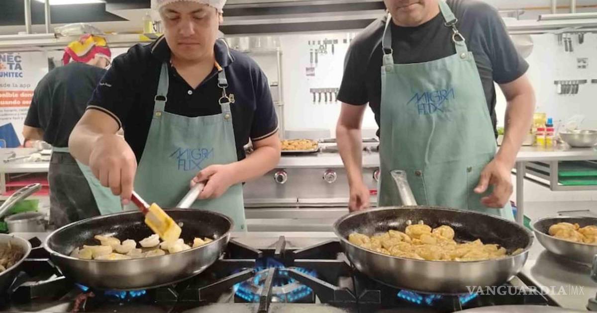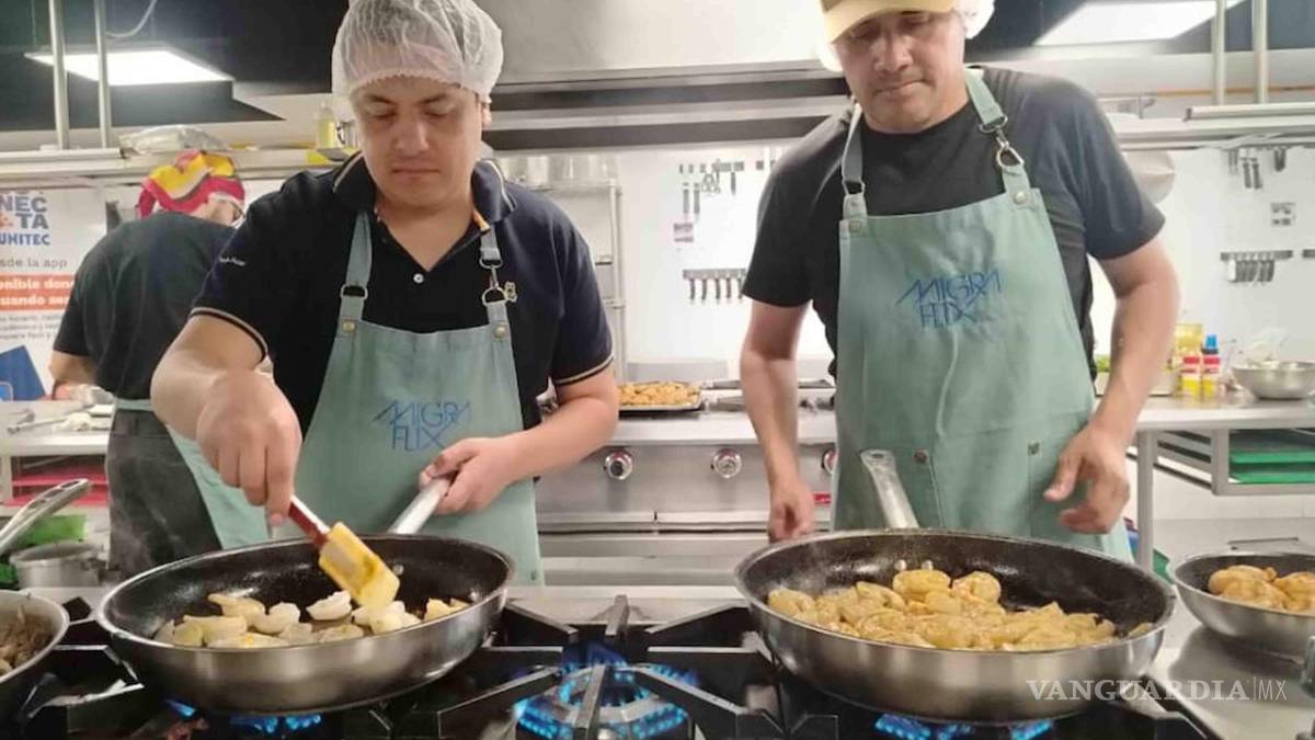 En la Universidad Tecnológica de México (UNITEC), campus Cuitláhuac, los connacionales Jaime, Luis Alberto y Carlos prepararon tacos de ribeye, camarones cajun y huazontle ranch como parte de las actividades del programa, desarrollado en colaboración con Migraflix.