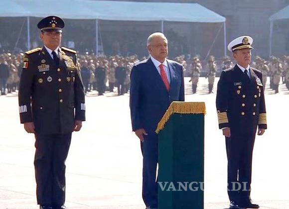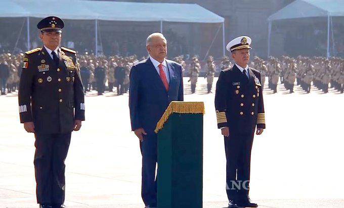 Durante el acto protocolario se realizó el izamiento de la Bandera y la revista a las tropas, después López Obrador se trasladó al presídium, al frente de Palacio Nacional.