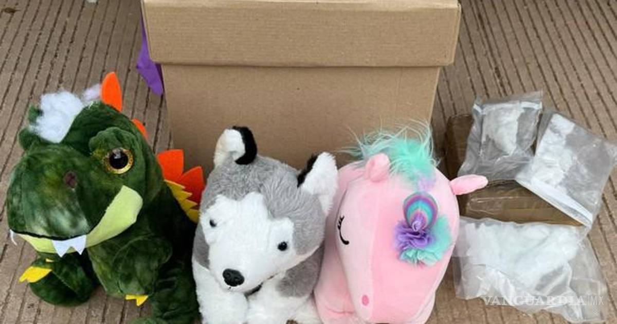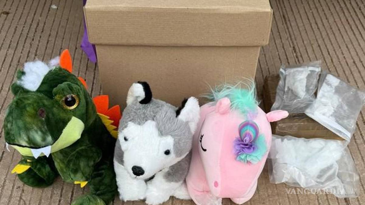 Los peluches ocultaban entre relleno de bolsas de plástico con polvo de color blanco, el cual, al ser puesto en una prueba química resultó positivo a cocaína.