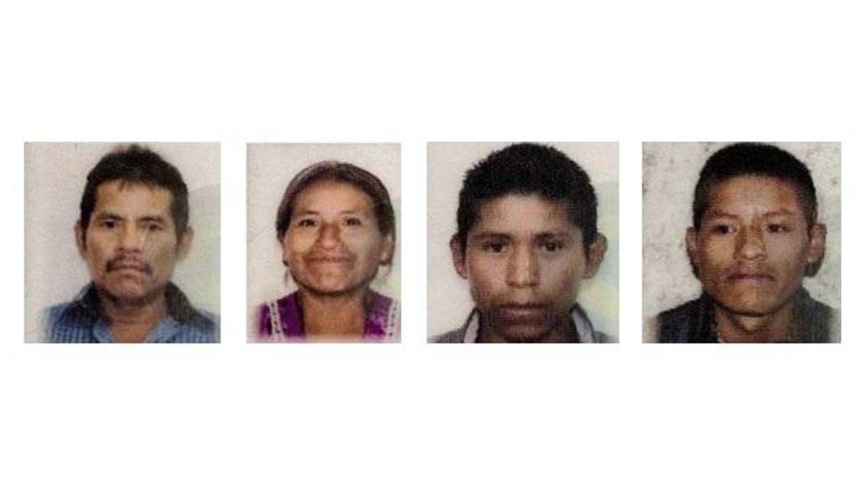 Se trata de Cecilia Gaspar Hernández, de 57 años; su esposo José Teodoro Domingo Ortiz, de 58, y sus hijos Roberto y Gaudencio Domingo Gaspar, de 30 años y 22 años.