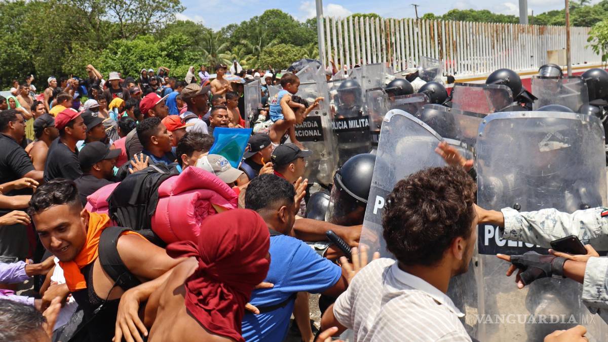 HUIXTLA, CHIS.- La caravana migrante, integrada por unos 4 mil migrantes de varios países y que se ha estacionado en el municipio mexicano de Huixtla, estado de Chiapas, se enfrentó ayer con agentes de la Guardia Nacional e ingresó por la fuerza a las oficinas del Instituto Nacional de Migración (INM) en el lugar.