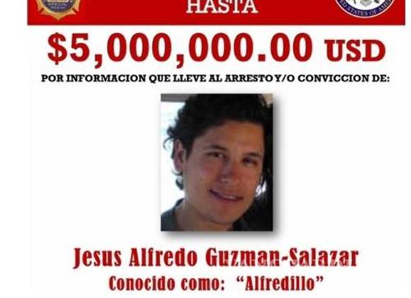 Ayer duplicó la recompensa para dar con la ubicación de Jesús Alfredo “Alfredillo” Guzmán Salazar, uno de los seis hijos de “El Chapo” Guzmán.