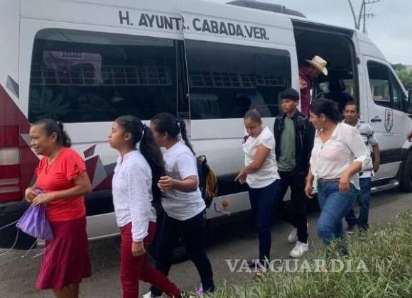 Proceso grabó el momento en que una camioneta tipo van con logotipo del “H. Ayuntamiento Constitucional Ángel R. Cabada 2022-2025”, que gobierna el morenista Julio César García, llegó al Deportivo 18 de Junio, del cual descendieron al menos 15 personas con esas características.