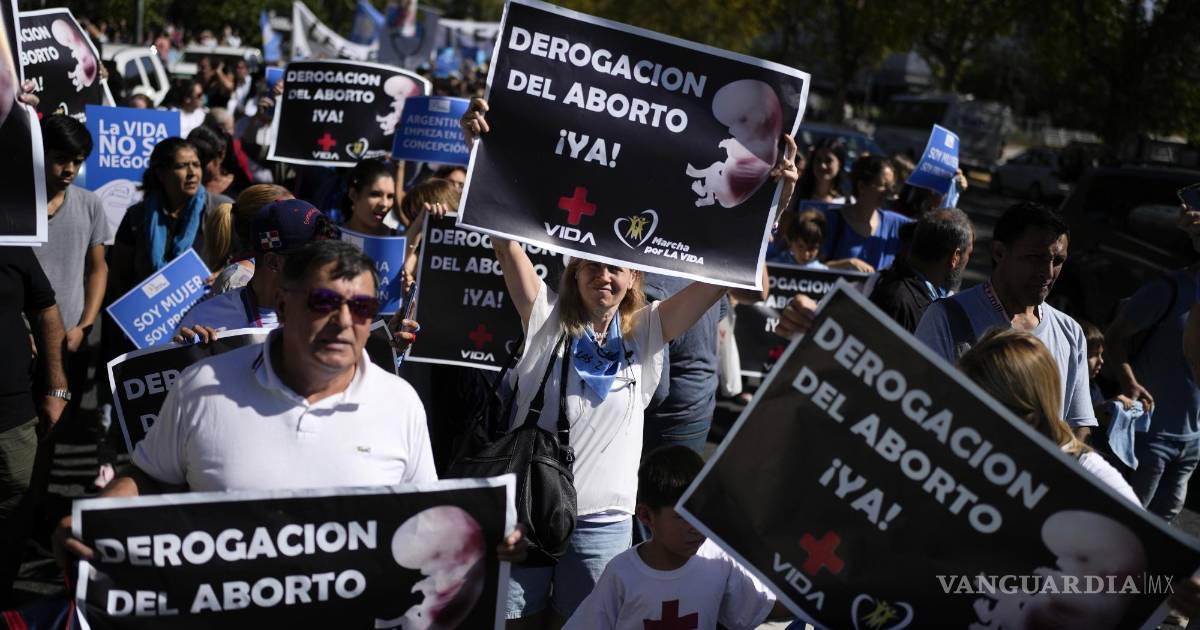 Los manifestantes tenían pancartas que decían “Argentina sin Aborto”, “Derogación del Aborto Ya” o “La vida no se negocia”.