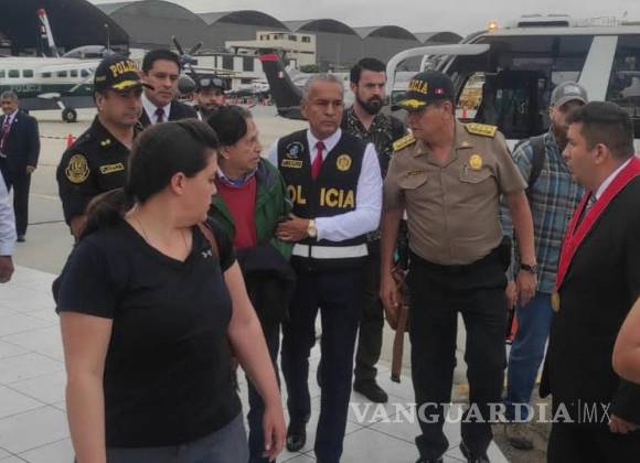 El exmandatario bajó de la nave esposado, después de ser entregado por alguaciles de Estados Unidos a los agentes de la Policía Nacional del Perú, y conducido a la Dirección de Aviación Policial (DIPA) aledaña al aeropuerto Jorge Chávez.