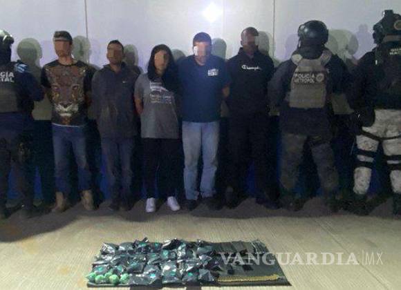 Además de los dos colombianos, fueron detenidos Alejandro Guadalupe “N”, de 34 años, originario de Jalisco; Hernán “N”, de 31 años, y Luz Elena “N”, de 34 años, ambos originarios de Zacatecas.
