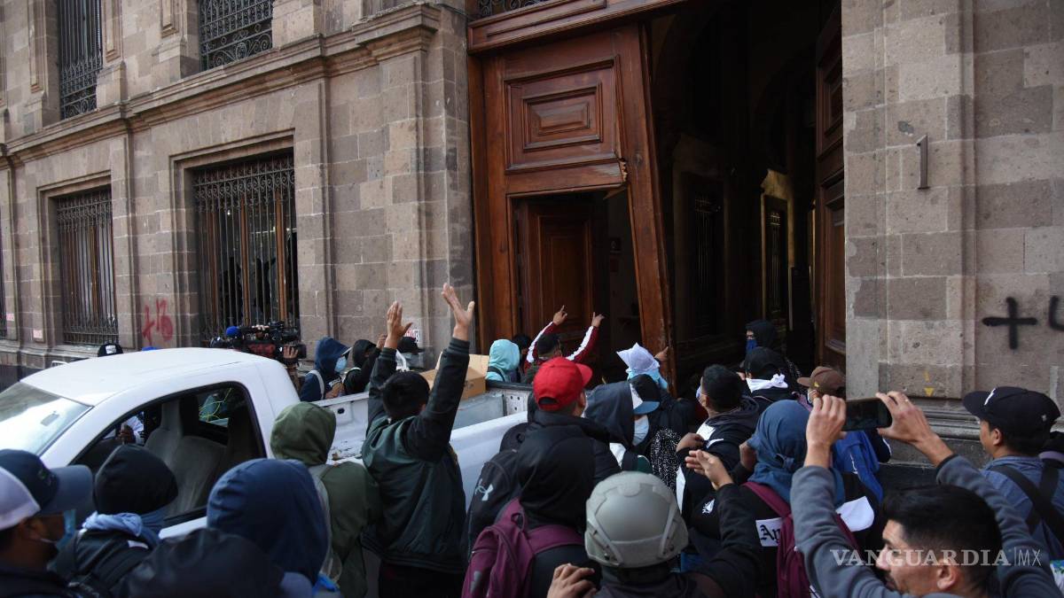 Por lo que un grupo de manifestantes encapuchados acudieron a la puerta 1 de la sede nacional, ubicada en la calle de Moneda, en el Centro Histórico de la Ciudad de México,