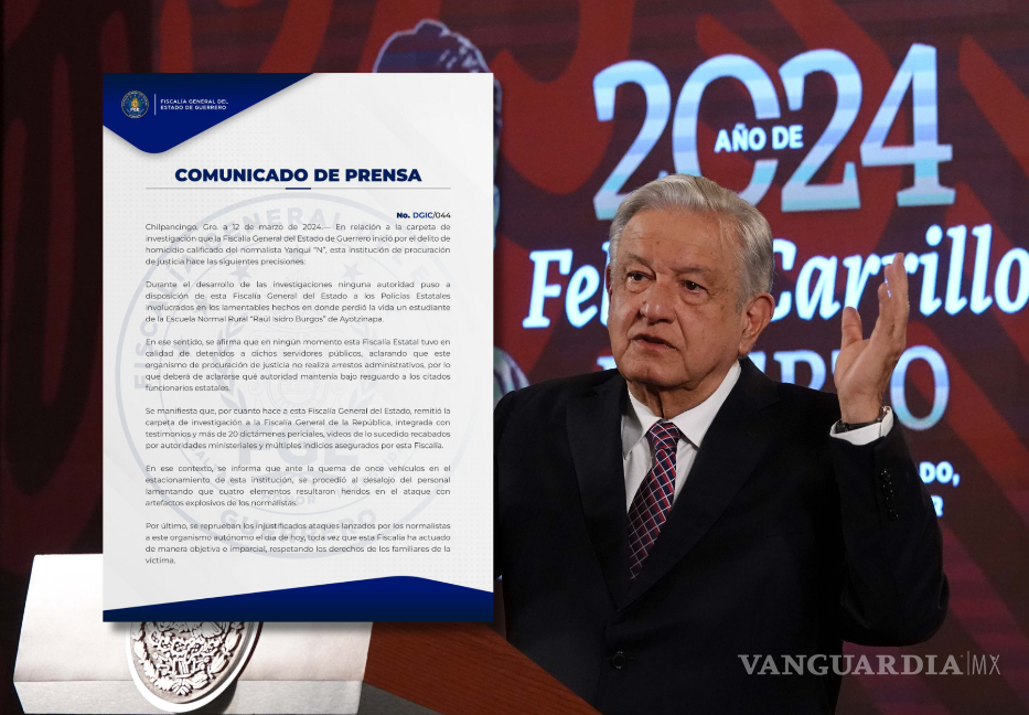 Ante las declaraciones del presidente, la Fiscalía de Guerrero emitió un comunicado para aclarar su participación en el caso. En el comunicado, la fiscalía precisó que durante el desarrollo de las investigaciones, ninguna autoridad puso a disposición de la fiscalía a los policías estatales involucrados en el lamentable suceso. Asimismo, negaron haber tenido bajo detención a dichos servidores públicos, enfatizando que la fiscalía no realiza arrestos administrativos.