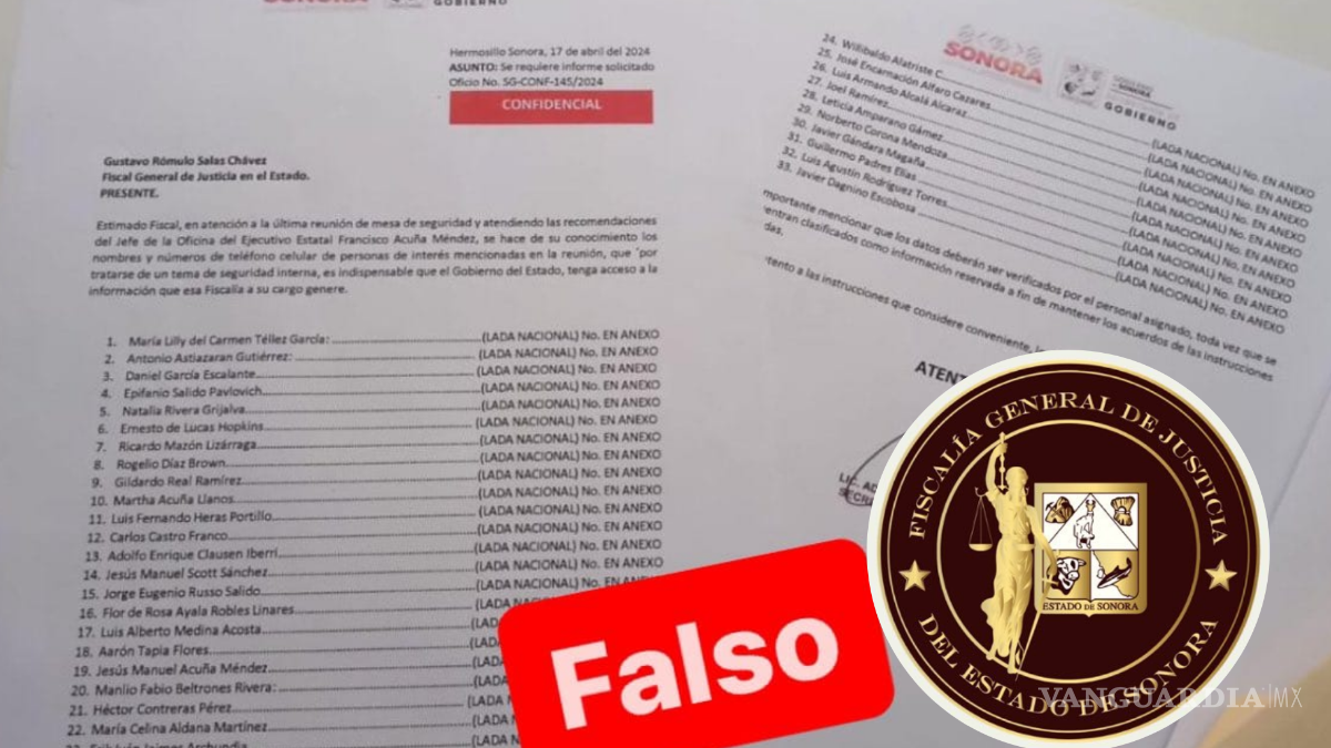FISCALÍA DE SONORA DESMIENTE PRESUNTA LISTA CON FINES DE ESPIONAJE