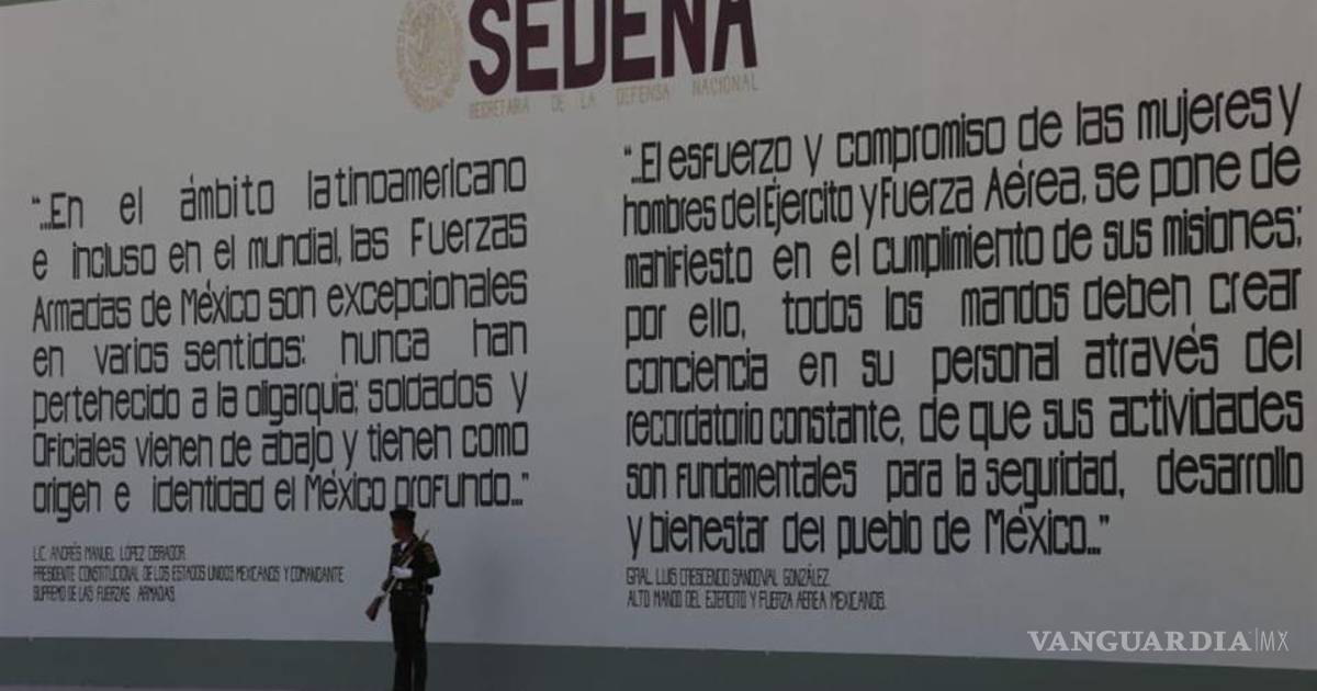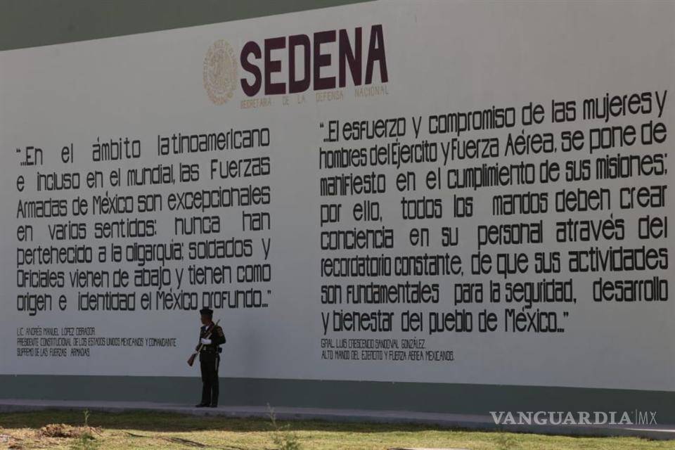 “En el ámbito latinoamericano e incluso en el mundial, las fuerzas armadas de México son excepcionales en varios sentidos: nunca han pertenecido a la oligarquía, soldados y oficiales vienen de abajo y tienen como origen e identidad el México profundo”, se lee en la pared.