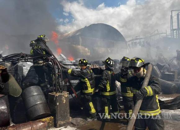 Estado de México.- Un fuerte incendio consumió una fábrica de químicos en el municipio mexiquense de San Vicente Chicoloapan.