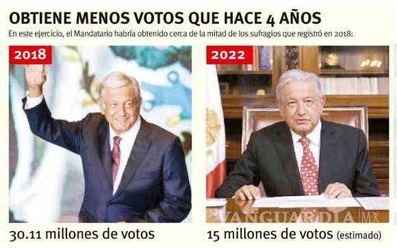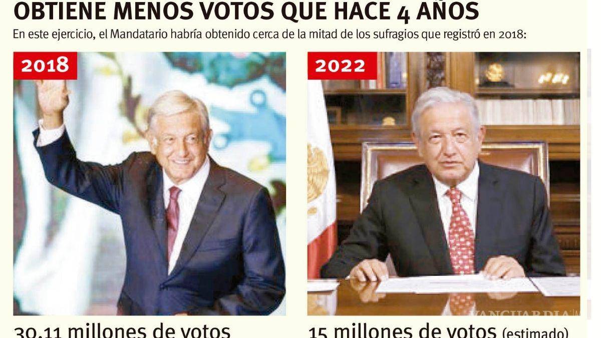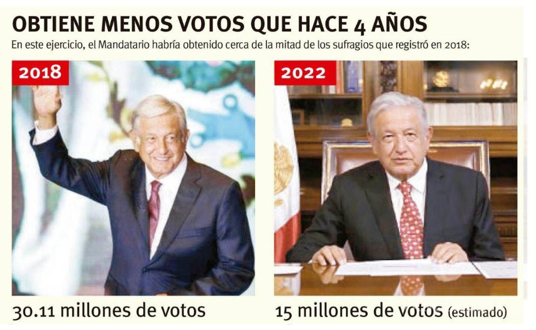 Andrés Manuel López Obrador ganó ayer en la consulta de revocación de mandato... pero los votos que obtuvo a su favor cayeron cerca de 50 por ciento en comparación con 2018.