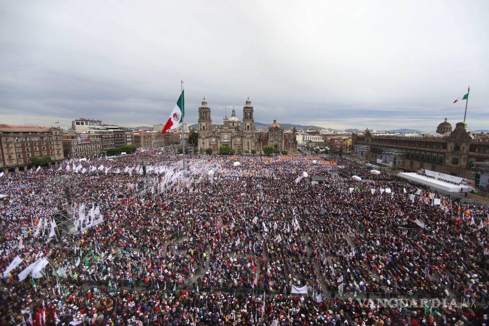 “La Plaza de la Constitución estuvo ocupada mayoritariamente por los grandes sindicatos −maestros, petroleros, obreros y electricistas− y militantes de Morena, con imágenes a las que estábamos acostumbrados hace 50 años”, recuerda.
