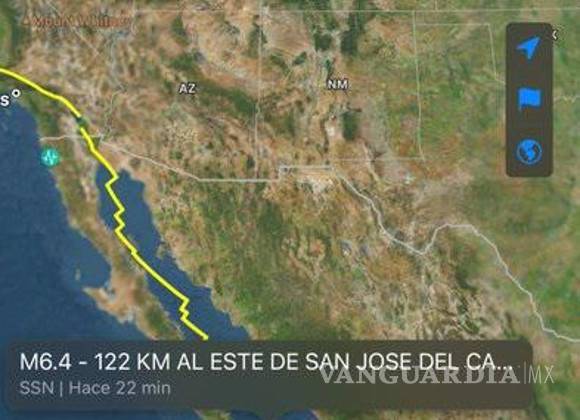 El Servicio Sismológico nacional coincidió en la magnitud 6.4, con epicentro 122 kilómetros al este de San José del Cabo.