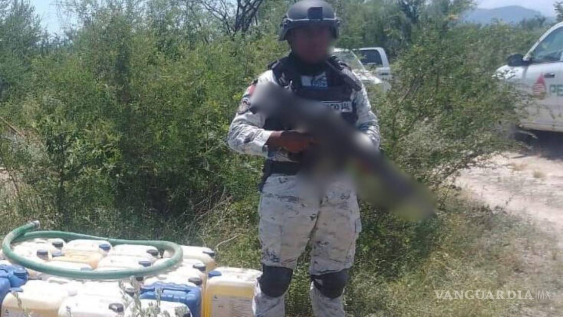 Durante patrullajes de prevención y vigilancia en dicho municipio, localizaron una perforación ilegal en el poliducto Satélite-Monclova-Sabinas, al cual estaba conectada una manguera.