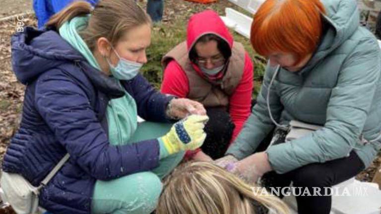 Así observó el medio de comunicación BBC, como un grupo de al menos cuatro mujeres en Dnipro preparan bombas molotov en las inmediaciones de una aparente área verde y la calle.