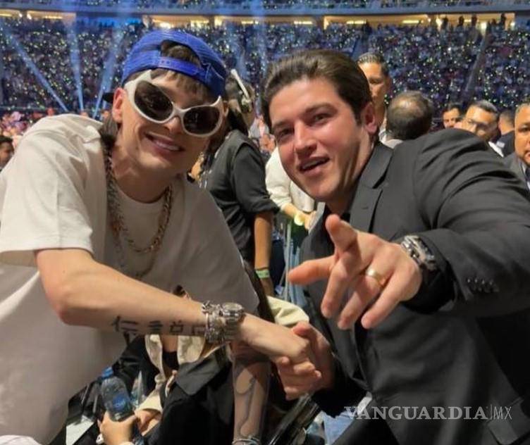 ‘¿Lo traemos a Nuevo León?’, preguntó el gobernador Samuel García en su cuenta de Twitter en relación con una fotografía en la que aparece posando con el famoso cantante Peso Pluma durante la pelea de saúl el ‘Canelo’ Álvarez.
