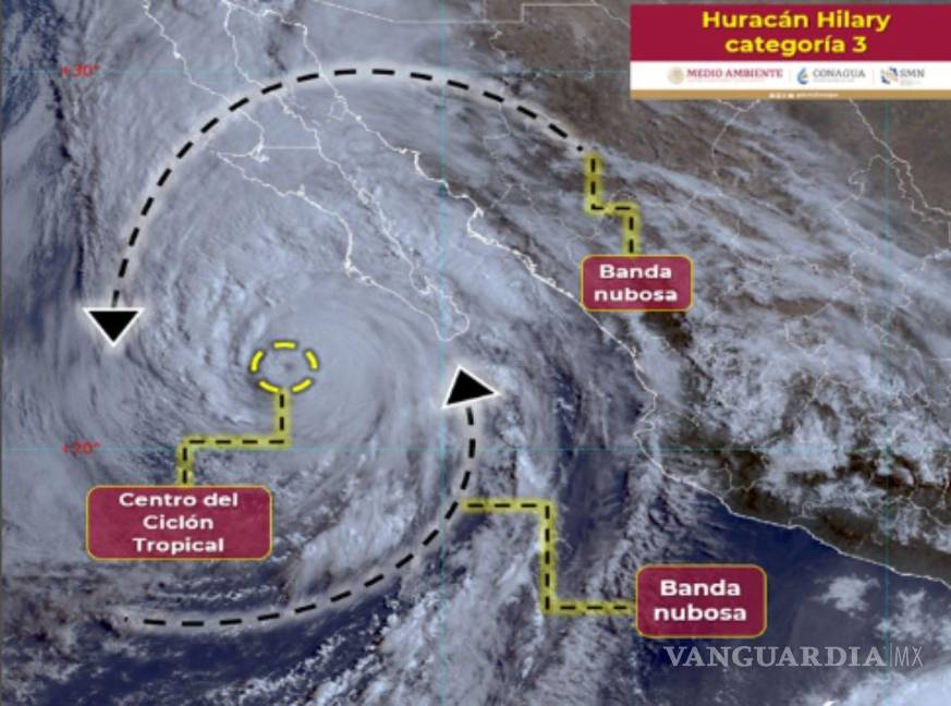 Huracán Hilary se degrada a categoría tres; Conagua alerta fuertes rachas de viento y lluvias a estos estados