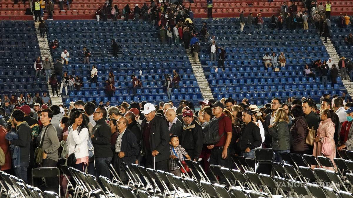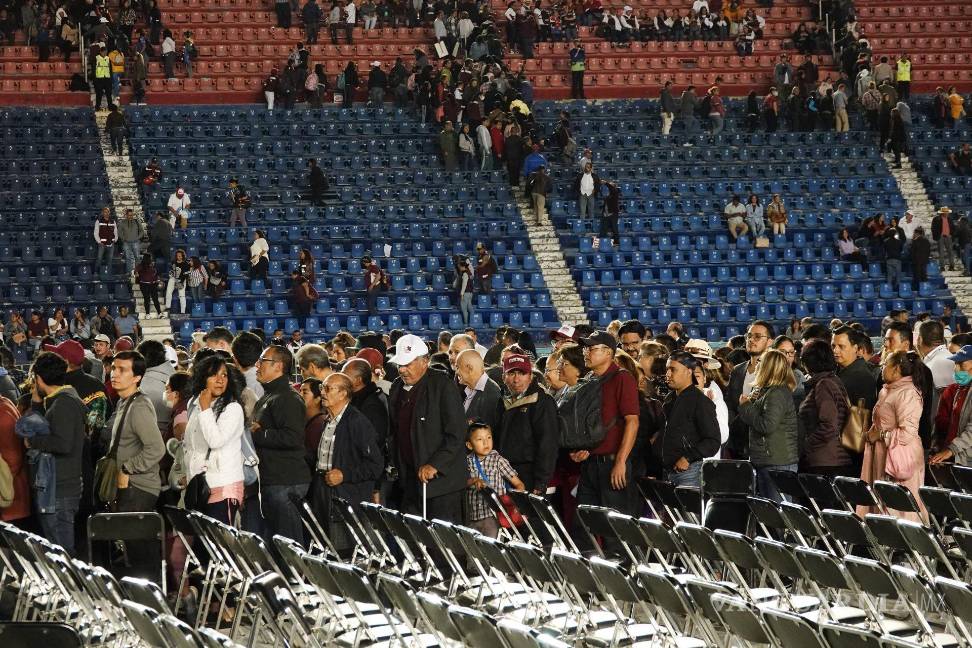 Morena convocó a un mitin en el estadio Cruz Azul en la alcaldía Benito Juárez, recinto deportivo que tiene una capacidad para 36 mil asistentes, y solo acudieron cientos, haciendo ver el lugar semivacío.