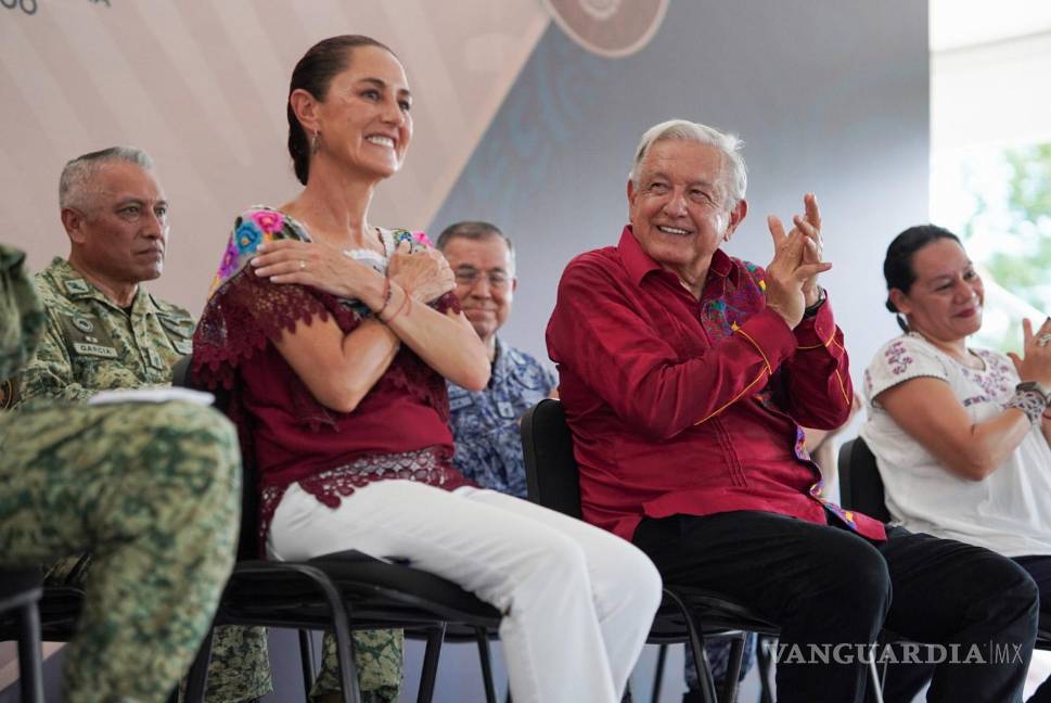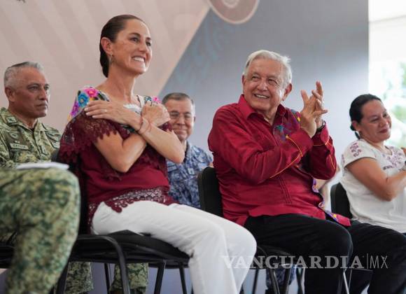 El titular del Ejecutivo federal arribó a este lugar turístico mediante la estación Bacalar del Tren Maya, en el cual recorrió la entidad este fin de semana junto a la futura presidenta.