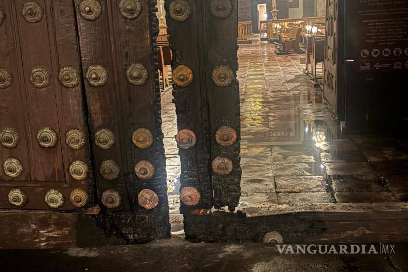 PUEBLA, PUE.- El portón norte de la Catedral de Puebla fue incendiado durante la madrugada, lo que movilizó a cuerpos de emergencia en el Centro Histórico; el fuego fue controlado sin que se reportaran personas lesionadas.