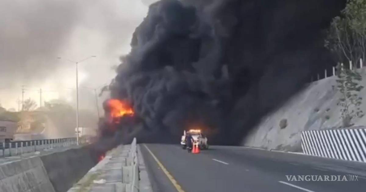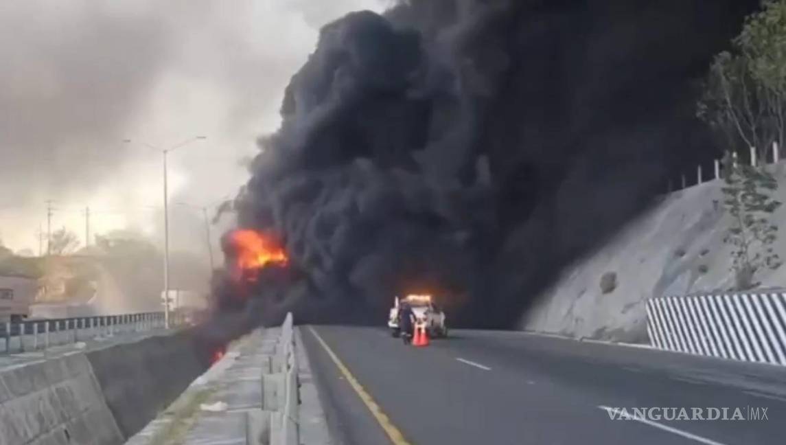 Incendio de pipa provoca cierre de la Autopista Monterrey-Reynosa, en Juárez