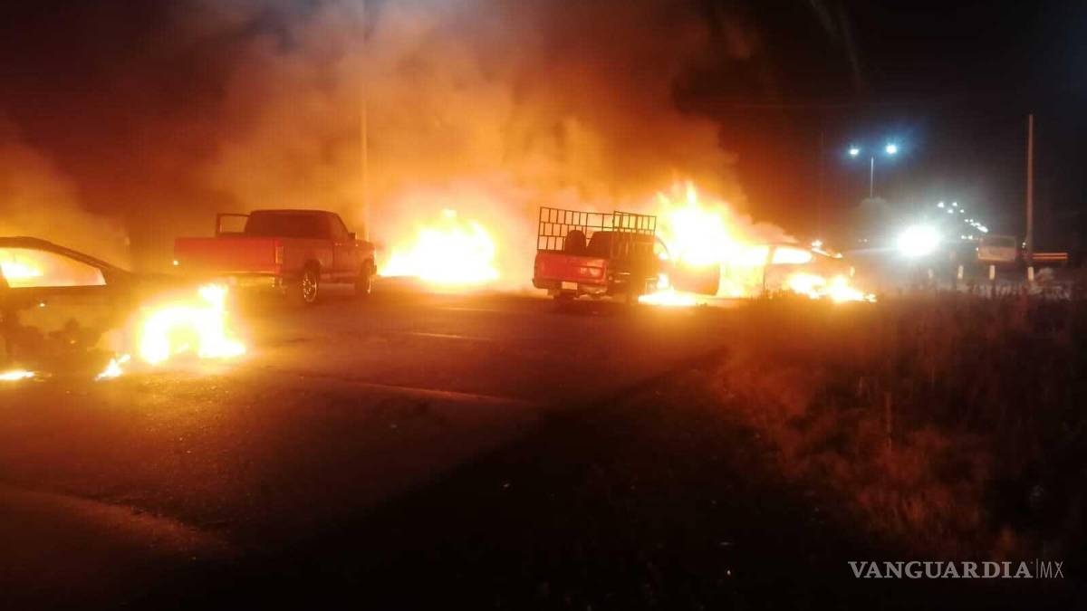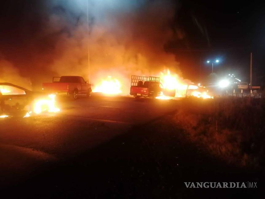 Zac-Saltillo Ruta 54: Pozo de Gamboa Km 10 cerrada la vía con vehículos incendiados.