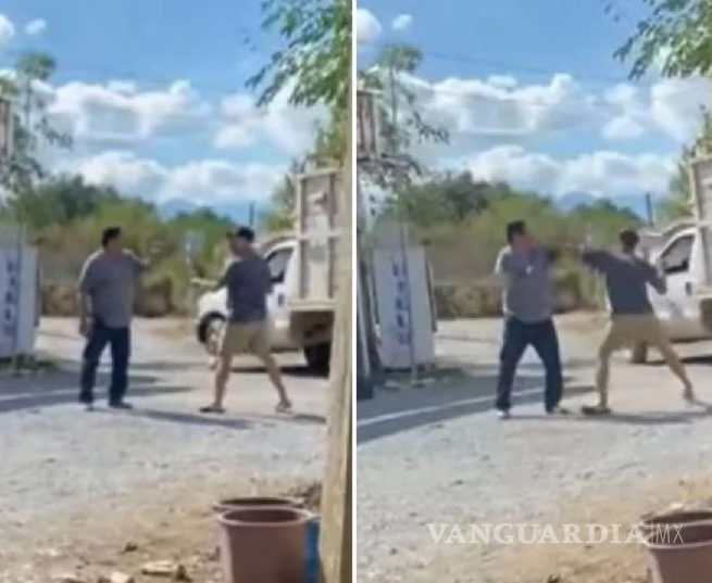 En redes sociales comenzó a difundirse un video donde se ven a ambos golpeándose afuera de un bar en Hualahuises