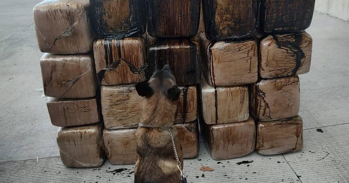 El binomio canino alertó a los elementos sobre una gran caja de madera que contenía una caldera de metal y los estupefacientes