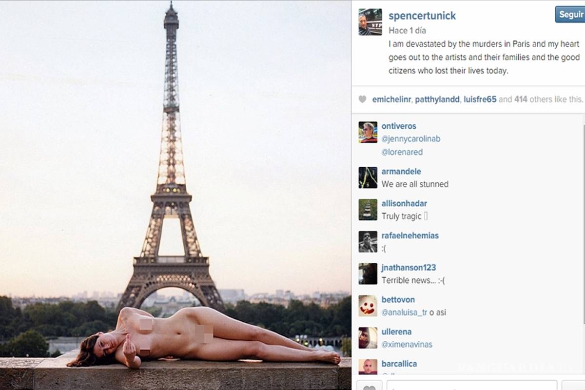 I am devastated by the murders in Paris and my heart goes out to the artists and their families and the good citizens who lost their lives today (Estoy devastado por los asesinatos en París y mi corazón está con los artistas y sus familias y los buenos ciudadanos que perdieron sus vidas), fue el mensaje que publicó Tunick en una imagen difundida en su cuenta de Instagram.