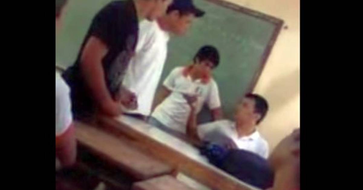 El joven, de unos 14 años aproximadamente, fue detenido por sus propios compañeros mientras que el maestro solo atinó a cubrirse la cara para protegerse.