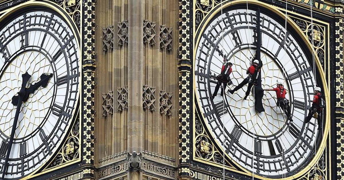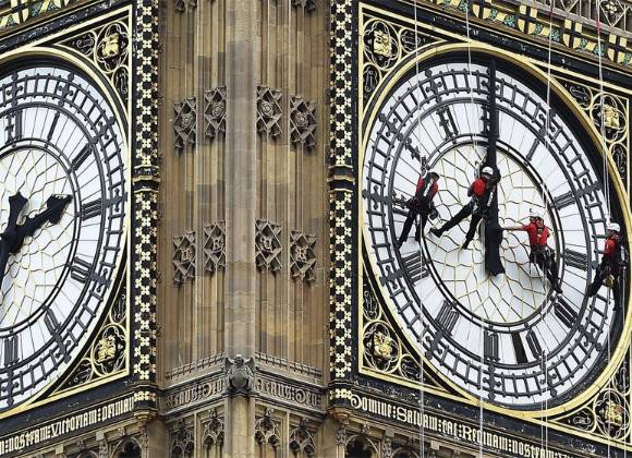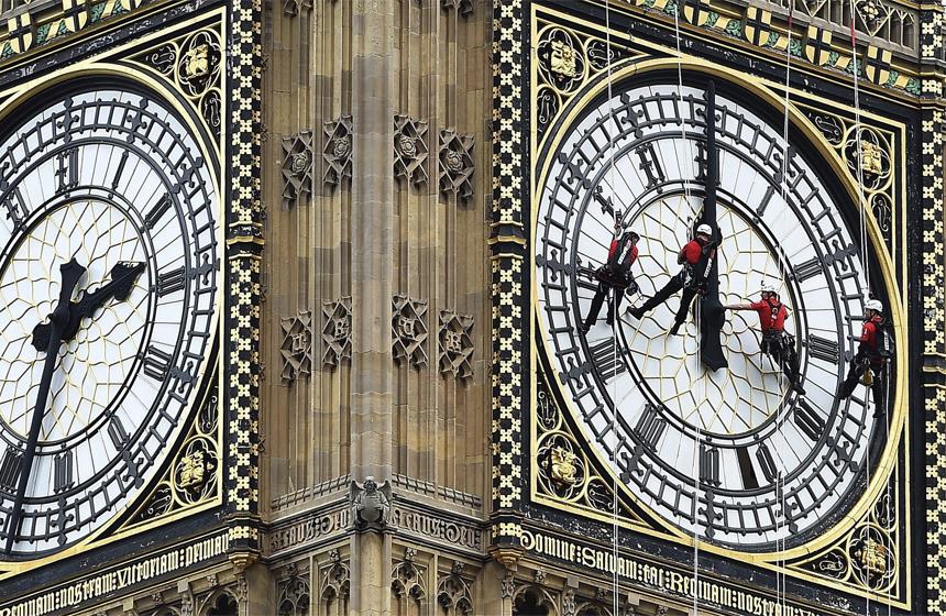 Los miles de turistas que cada día se acercan al palacio de Westminster, sede del Parlamento británico y uno de los puntos más visitados de la ciudad, observarán durante esta semana a cuatro operarios suspendidos con cuerdas frente al famoso reloj.