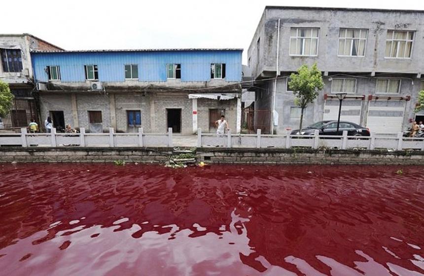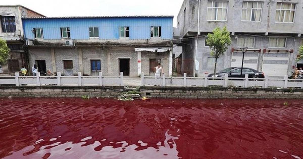 Pekín.- Lo que hasta hace poco era un canal navegable en el este de China se ha convertido misteriosamente en un río "color sangre".