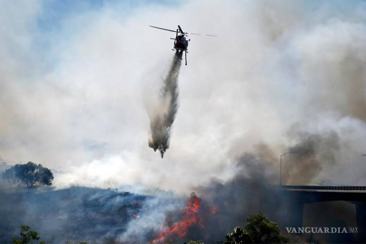 San Diego, California. Un incendio forestal que recorre el sur de California obligó a las autoridades a ordenar la evacuación de más de 20 mil viviendas el martes, pero hasta el momento sólo una casa móvil se había quemado.