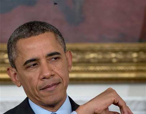 WASHINGTON.- Una mosca se posó hoy en la frente del presidente de EU, Barack Obama, mientras comparecía en la Casa Blanca y la escena sirvió para recordar la entrevista de televisión de junio de 2009 en la que el mandatario mató de un manotazo a otra mosca que le estaba molestando.