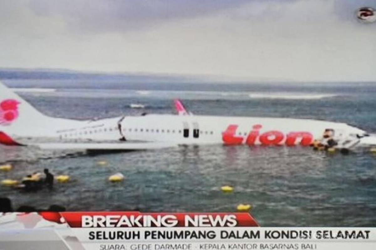 Durante las maniobras de aterrizaje el avión sobrepasó la pista del aeropuerto de la isla indonesia de Bali y cayó al mar por causas que se desconocen; tanto pasajeros como tripulación han sobrevivido al accidente