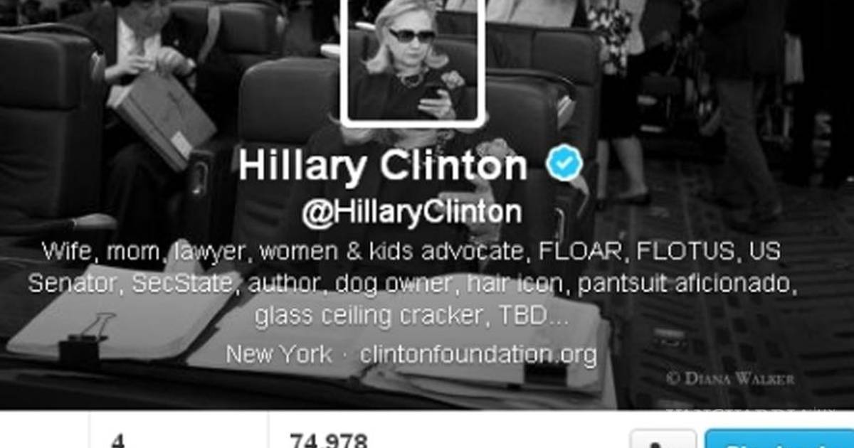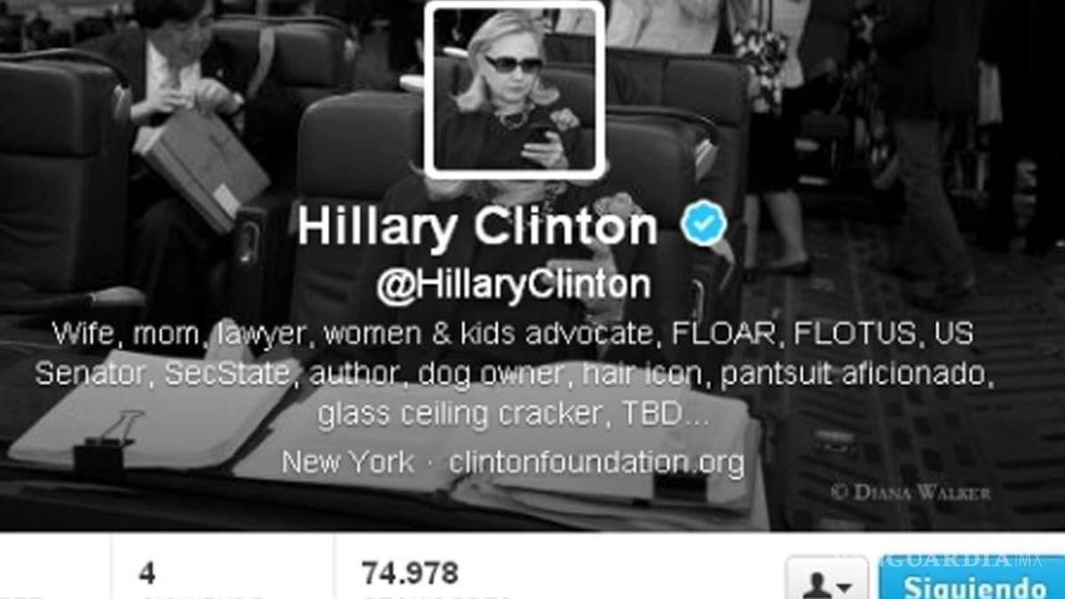 El nuevo perfil de Twitter describe a Clinton como "esposa, madre, abogada, activista en favor de las mujeres y los niños, primera dama de Arkansas, primera dama de EU., senadora, secretaria de Estado, autora, propietaria de perros, icono de peluquería, aficionada a los trajes de chaqueta y rompedora de barreras".