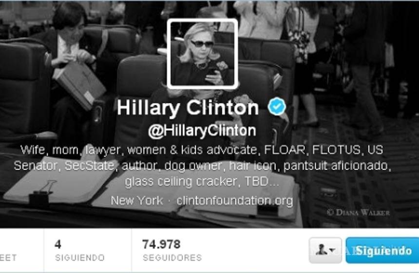 Clinton estrenó su primera cuenta de Twitter, @HillaryClinton, con una referencia al blog "Texts from Hillary", creado en 2012 y que imaginaba en tono de humor los mensajes de texto que la entonces titular de Exteriores enviaba a políticos e incluso actores.