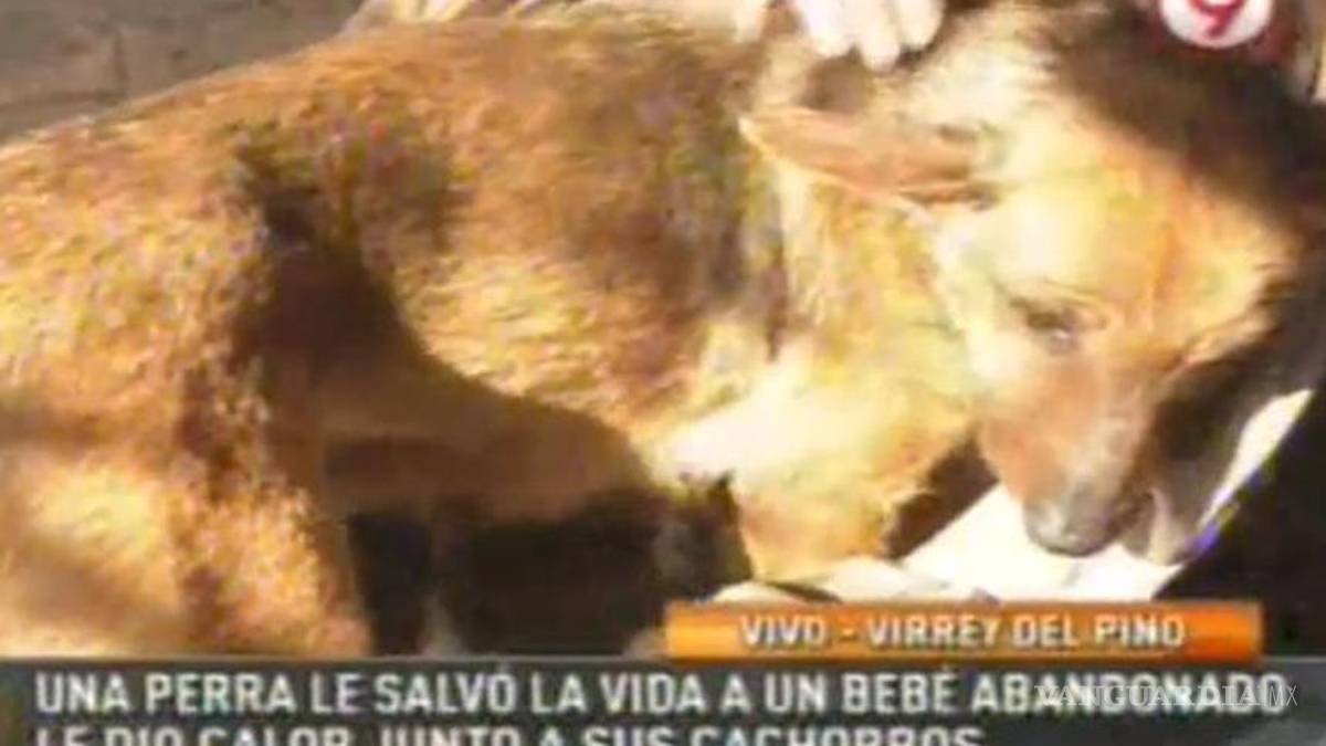 Perra salva a bebé abandonado al cobijarlo junto a sus crías